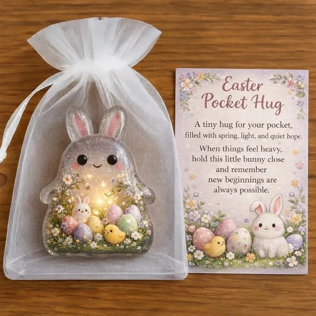- Adorable Bunny Design:The Pocket Hug features a sweet, hand-crafted bunny surrounded by colorful Easter eggs, baby chicks, and delicate flowers—capturing the essence of springtime and new beginnings.